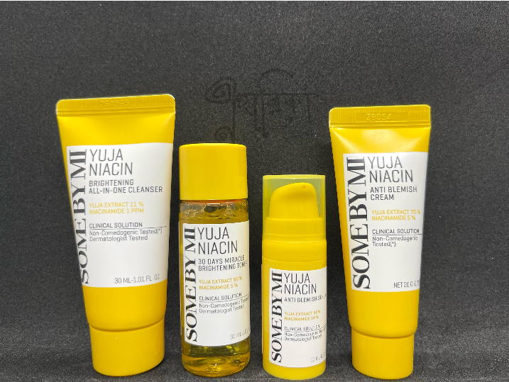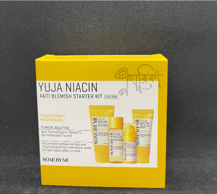 Yuja Niacin Anti Blemish Starter Kit হল দাগ, কালচে ভাব এবং অসম ত্বকের রঙ দূর করতে সাহায্যকারী একটি সেট। এতে Yuja (যুজা) এক্সট্র্যাক্ট ও Niacinamide (ভিটামিন B3) রয়েছে, যা ত্বককে উজ্জ্বল, মসৃণ ও দাগমুক্ত করতে কার্যকর। এটি বিশেষ করে ব্রণের দাগ ও হাইপারপিগমেন্টেশন কমাতে সহায়ক। কিটটিতে সাধারণত ক্লেনজার, টোনার, সিরাম ও ক্রিম অন্তর্ভুক্ত থাকে।